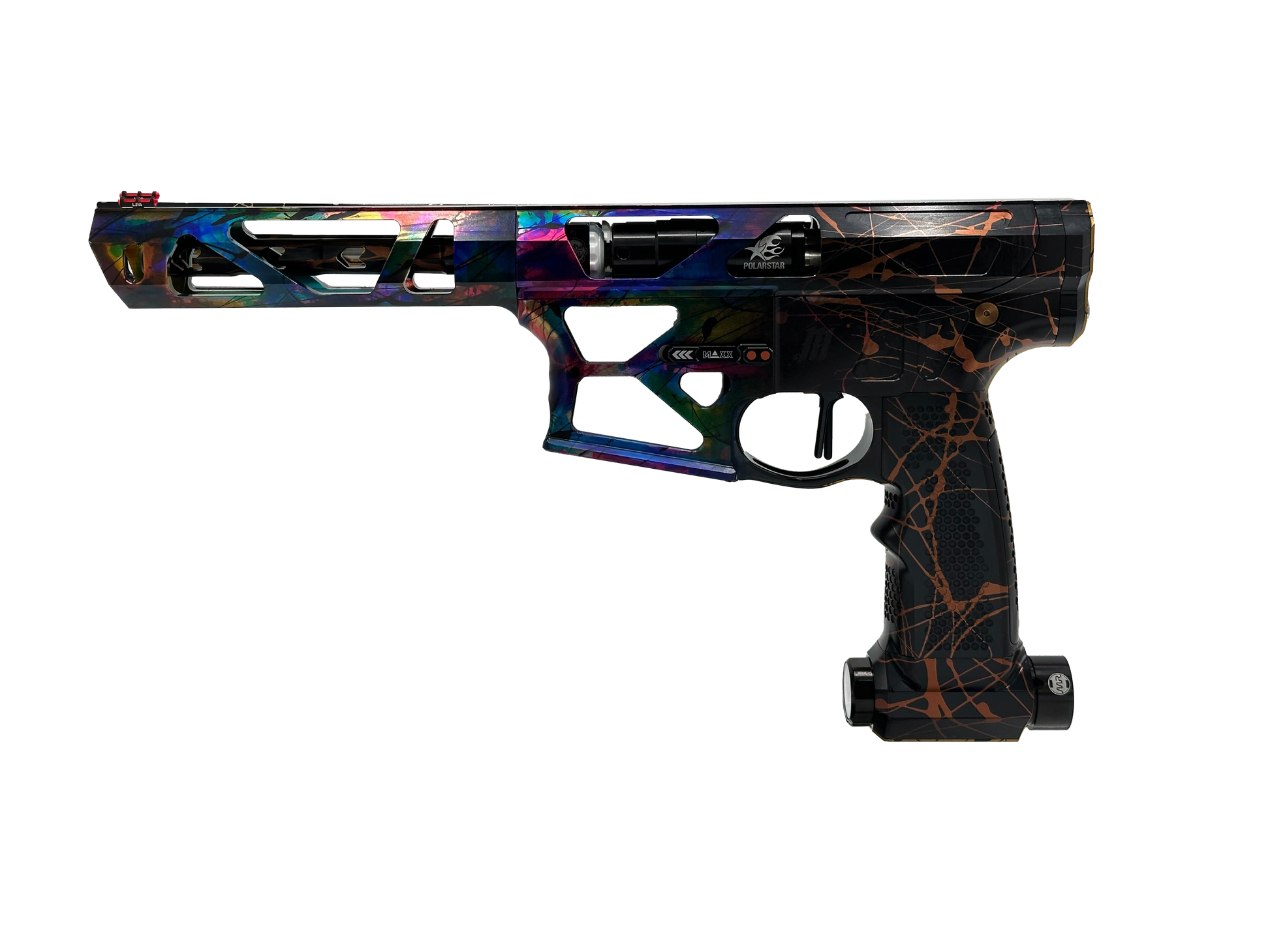 With ESG Polarstar grip and Polarstar micro regulatorNew On/Off back cap with colored LED push button. Includes wiring. You don’t need to install the On/Off push button.